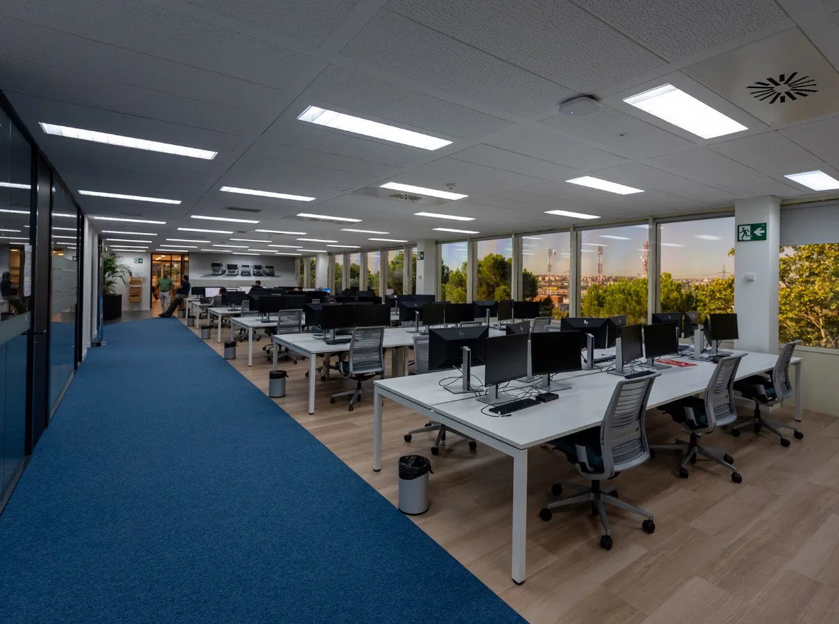 - Climatización: Se ha instalado un sistema de climatización avanzado con control zonificado a través de AIRZONE, que permite una regulación precisa de la temperatura, optimizando el consumo energético y mejorando la sostenibilidad del entorno de trabajo.