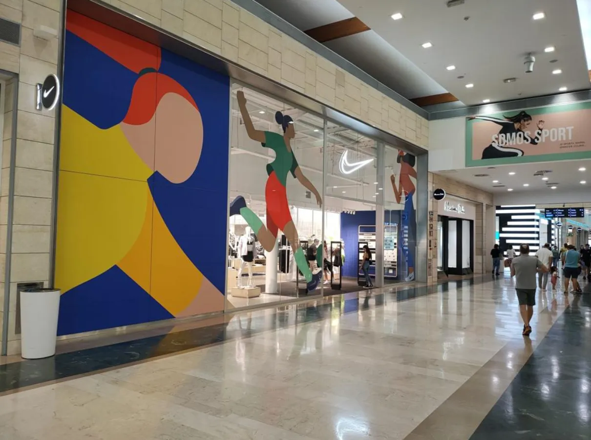 Asimismo, se ha llevado a cabo la demolición integral del local comercial actualmente ocupado por Nike, dejándolo preparado para la futura implantación de la firma. Estos trabajos han incluido la demolición de la fachada existente y la colocación de nuevas jambas realizadas con chapas de acero inoxidable de 10 mm de espesor, aportando una solución resistente, duradera y acorde a los estándares del centro comercial.