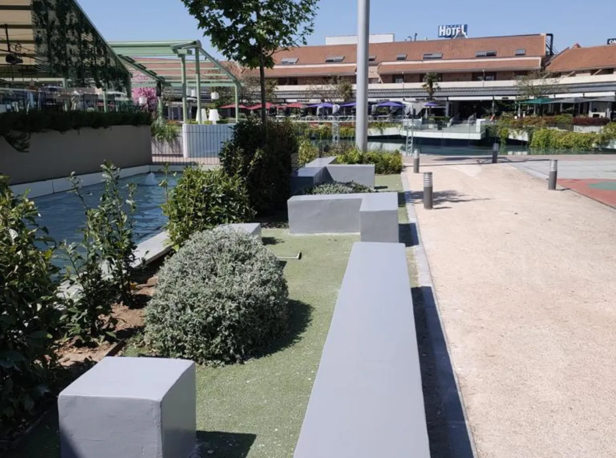 Entre las actuaciones realizadas en áreas comunes, destacan especialmente la reparación de bancos en la zona de ocio y la solución de problemas de goteras en el parking, garantizando la seguridad, funcionalidad y confort de los usuarios del centro comercial.