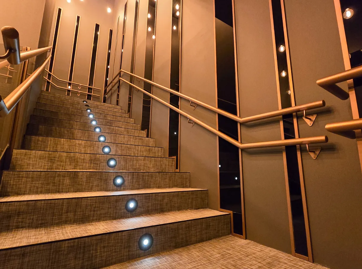 El proyecto también incluyó la instalación de carpintería metálica y de madera, junto con la aplicación de acabados cuidadosamente seleccionados para crear espacios funcionales, modernos y adaptados al uso intensivo propio de este tipo de instalaciones de ocio.